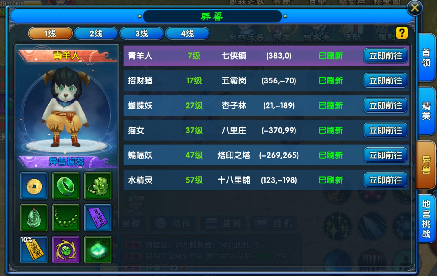 与精英怪物相同,每个异兽也会在地图不同线路都会刷新,大家可以切换线路进行多次挑战。