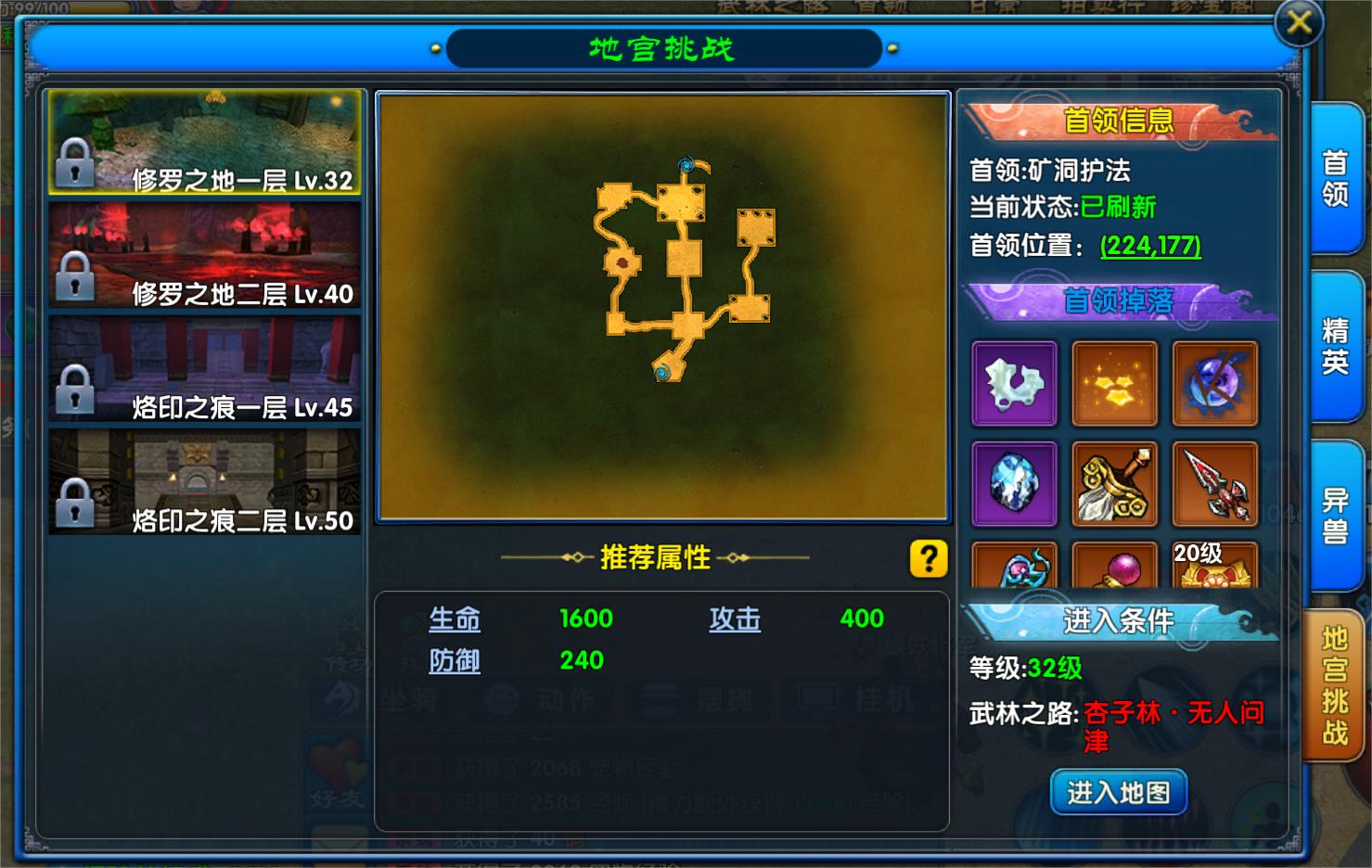 地宫挑战中达到对应等级以及完成武林之路中的指定章节,即可进入挑战。地宫怪物拥有强大的控制效果,达到对应推荐抗性后可无视对应的控制效果。