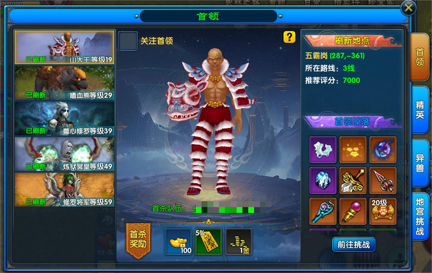 击败首领可获得传说品质装备、首饰、传说装备材料等丰厚奖励。